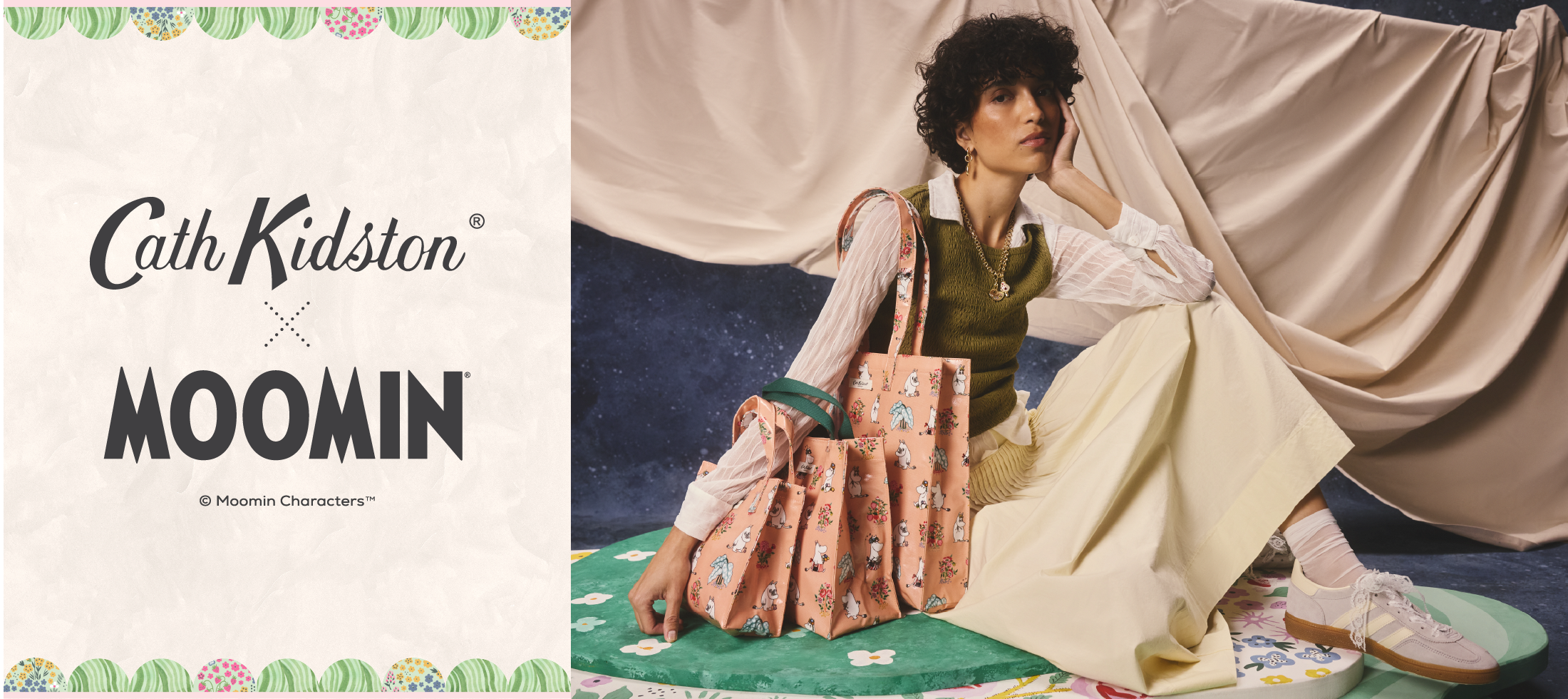 Cath Kidstonの代表的なプリント柄と、トーベ・ヤンソンが愛したムーミンのキャラクターたちを、